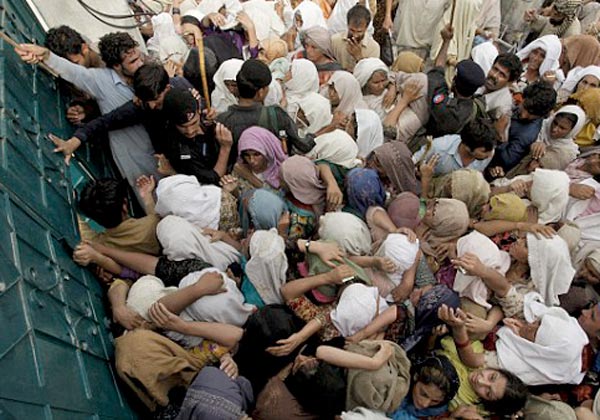 Providing essential food packs to flood-affected families across Pakistan during the 2010 crisis.